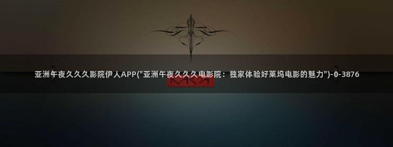 伊人电影院久久网:亚洲午夜久久久影院伊人APP(\"亚洲午夜久久久电影院:独家体验好莱坞电影的魅力\